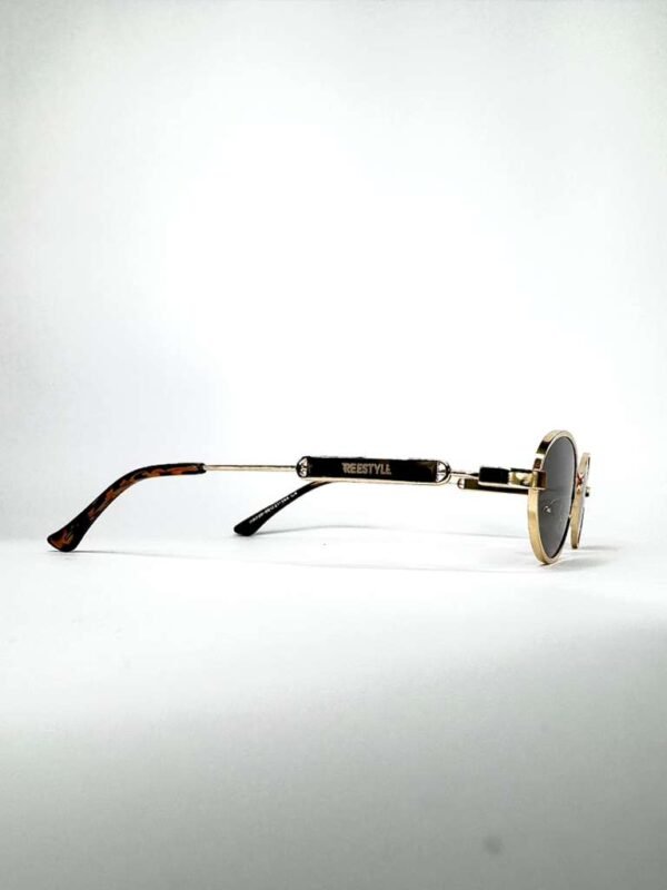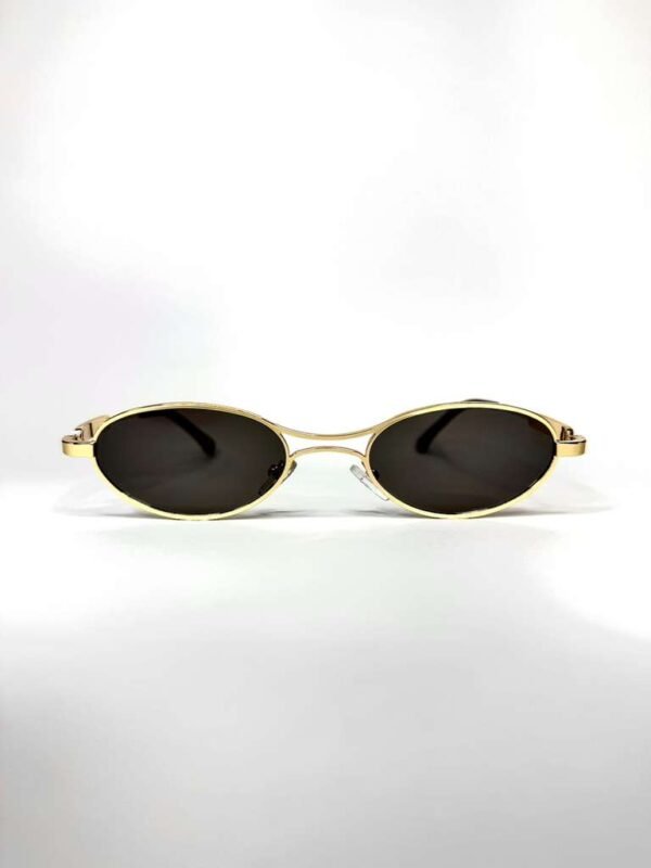 A Coleção Solaris nasce da fusão entre o clássico e o contemporâneo. O metal dourado emoldura lentes intensamente escuras, criando um contraste elegante e provocante. O design oval evoca o espírito retrô, enquanto o acabamento polido e os detalhes de estrutura revelam a força do design moderno.